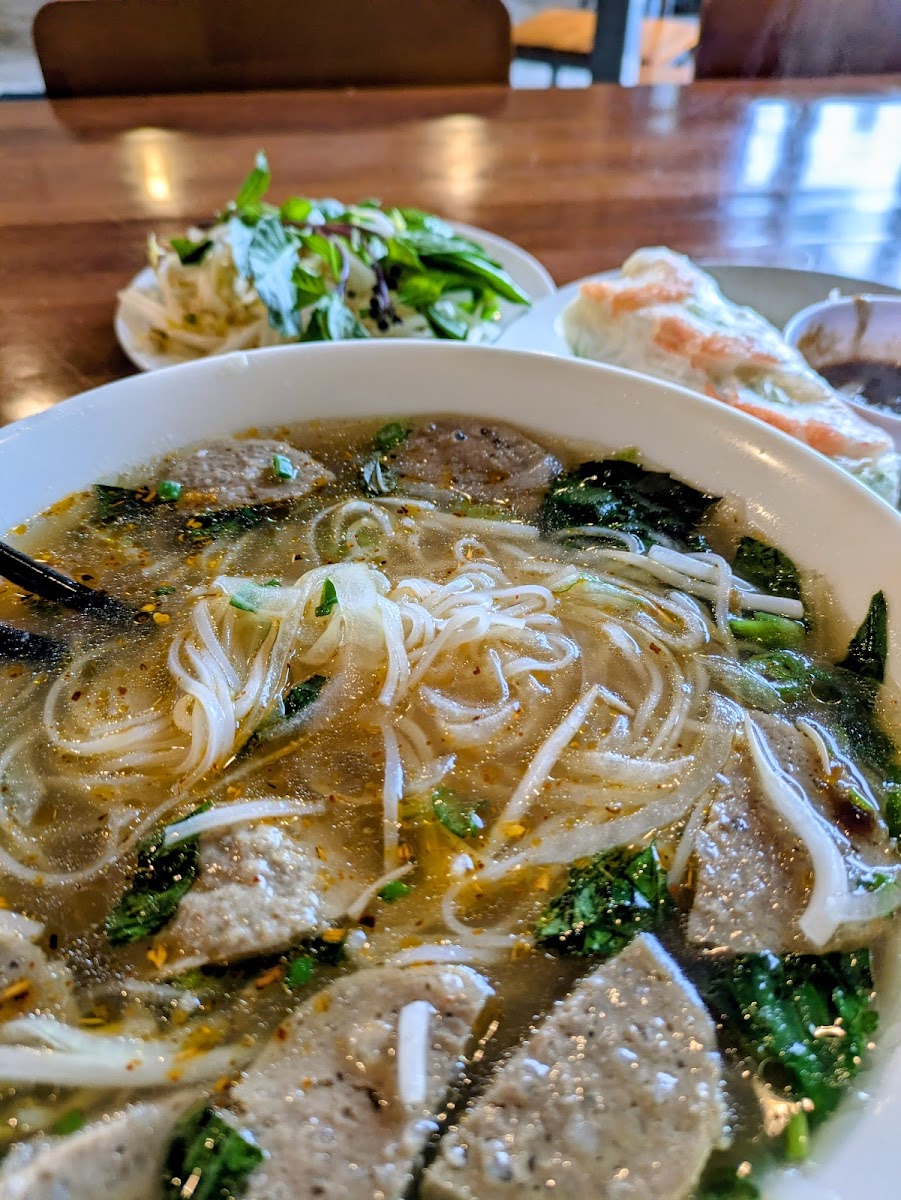 I have been on the road for a few days and am craving Vietnamese foods. Found this restaurant on GMaps, read some reviews and decided to check it out myself. I have the combo pho and it does not disappoint: the broth was on point, the amount of meats (meatballs, and brisket) were just right. The place is clean and I learned that the ownership has changed hands recently. To the new owners: please do not change (or short cut) the broth making for the phở. 4 instead of 5 stars due to the bowl size.