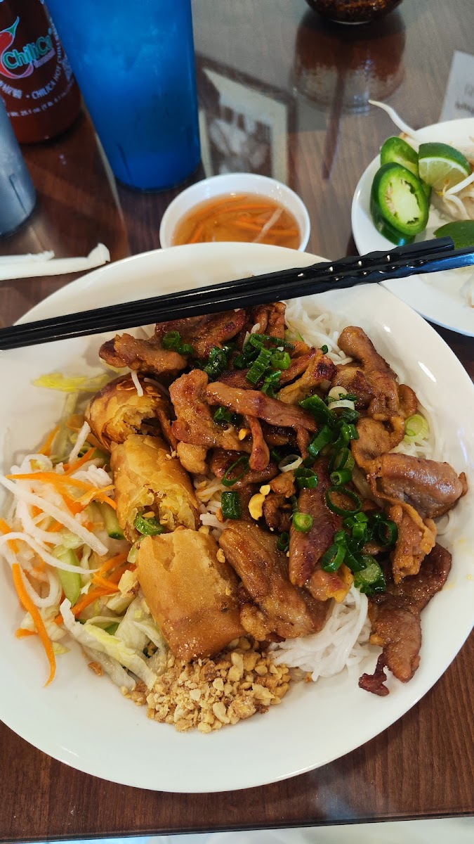 I think the food here was nice for a change. I was on the road for about 2.5 hours and it was a nice break from burgers and gas station food. Honestly, their portions weren't much and I don't think it was worth $20 for that size bowl of pho. In the Twin Cities, you get twice that for less than $20 but I'd say the pho was a 3.5/5. I would still love to try something else on the menu if I'm ever in the town again. Understandably, maintaining a restaurant where the city doesn't have ingredients down the street may be a challenge. The vermicelli bowl was refreshing and tasty.